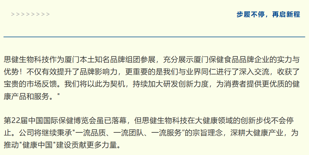 圓滿(mǎn)落幕 | 思健生物科技在第22屆中國國際保健博覽會(huì )收獲豐碩成果