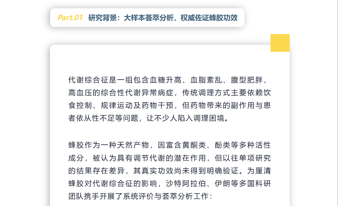蜂膠科研再出新成果!20 項臨床試驗證實調(diào)控血糖血脂精準(zhǔn),代謝綜合征人群新福音